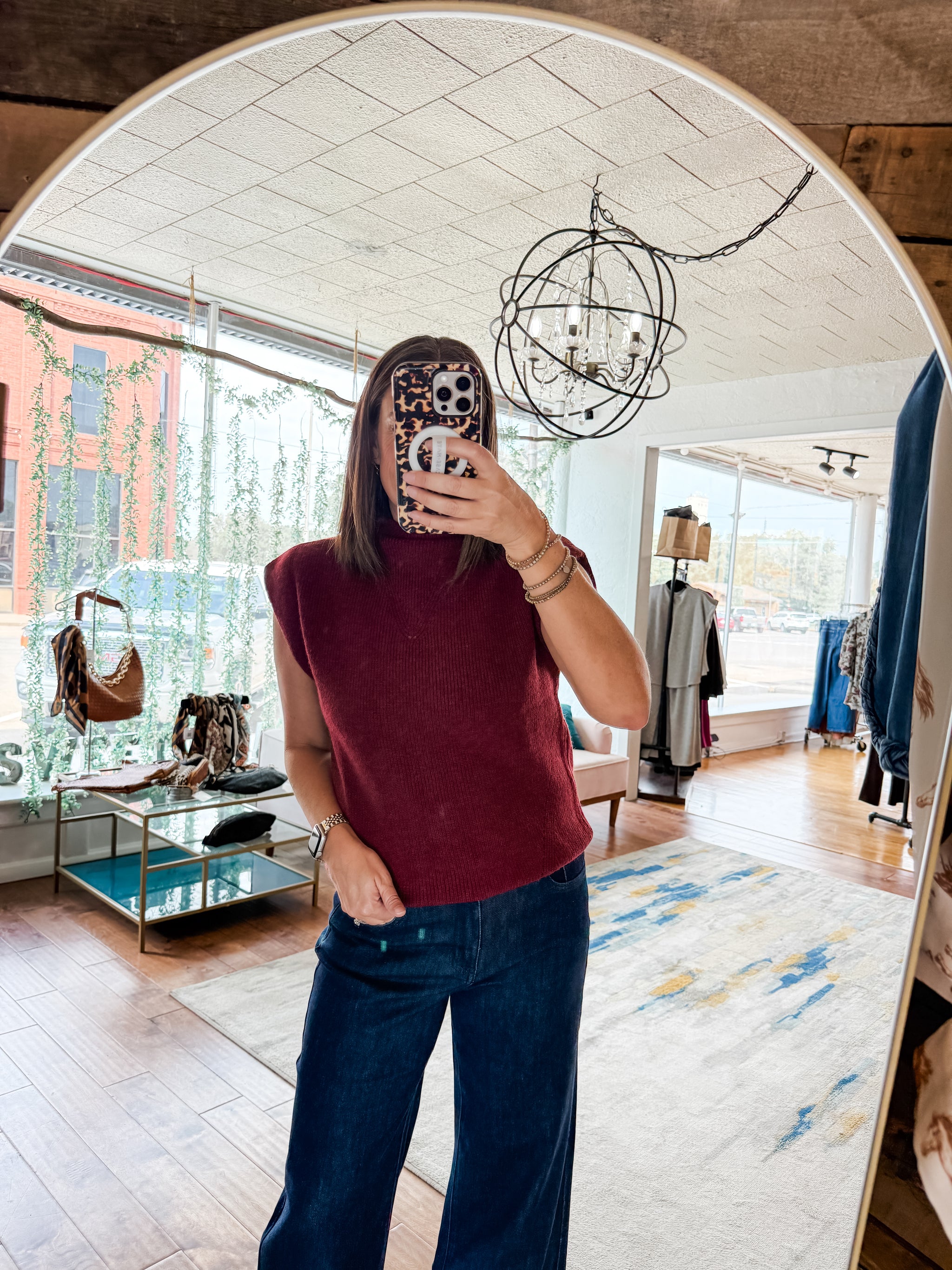 These bring us back to the good ol days! This sweater has a mock neck and a ribbing detail at the neck and sides. Wear alone or layered on the colder days.