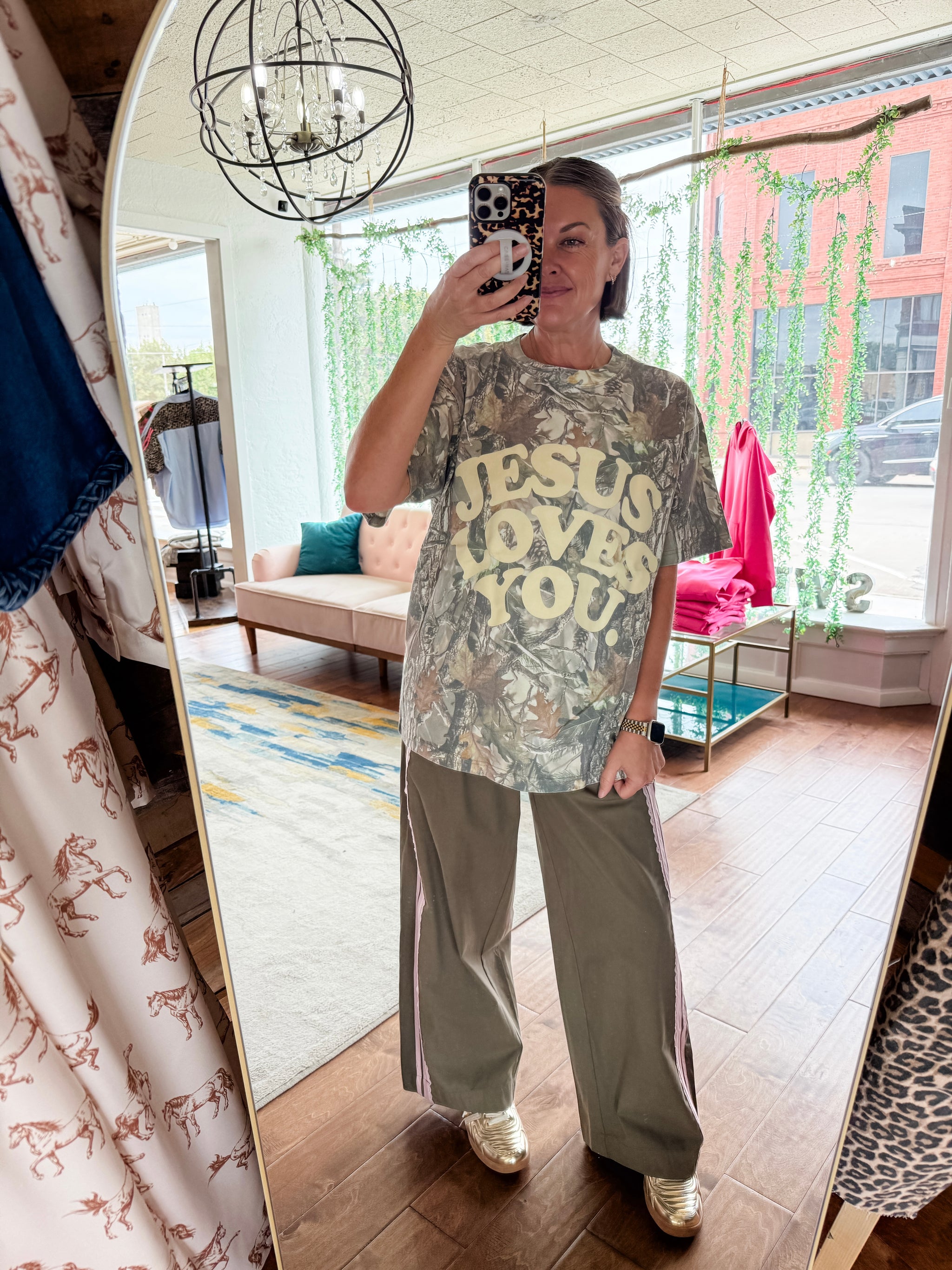 This is printed on a  Heavyweight Oversized Camo Tee. I am wearing the medium, with is my true size.