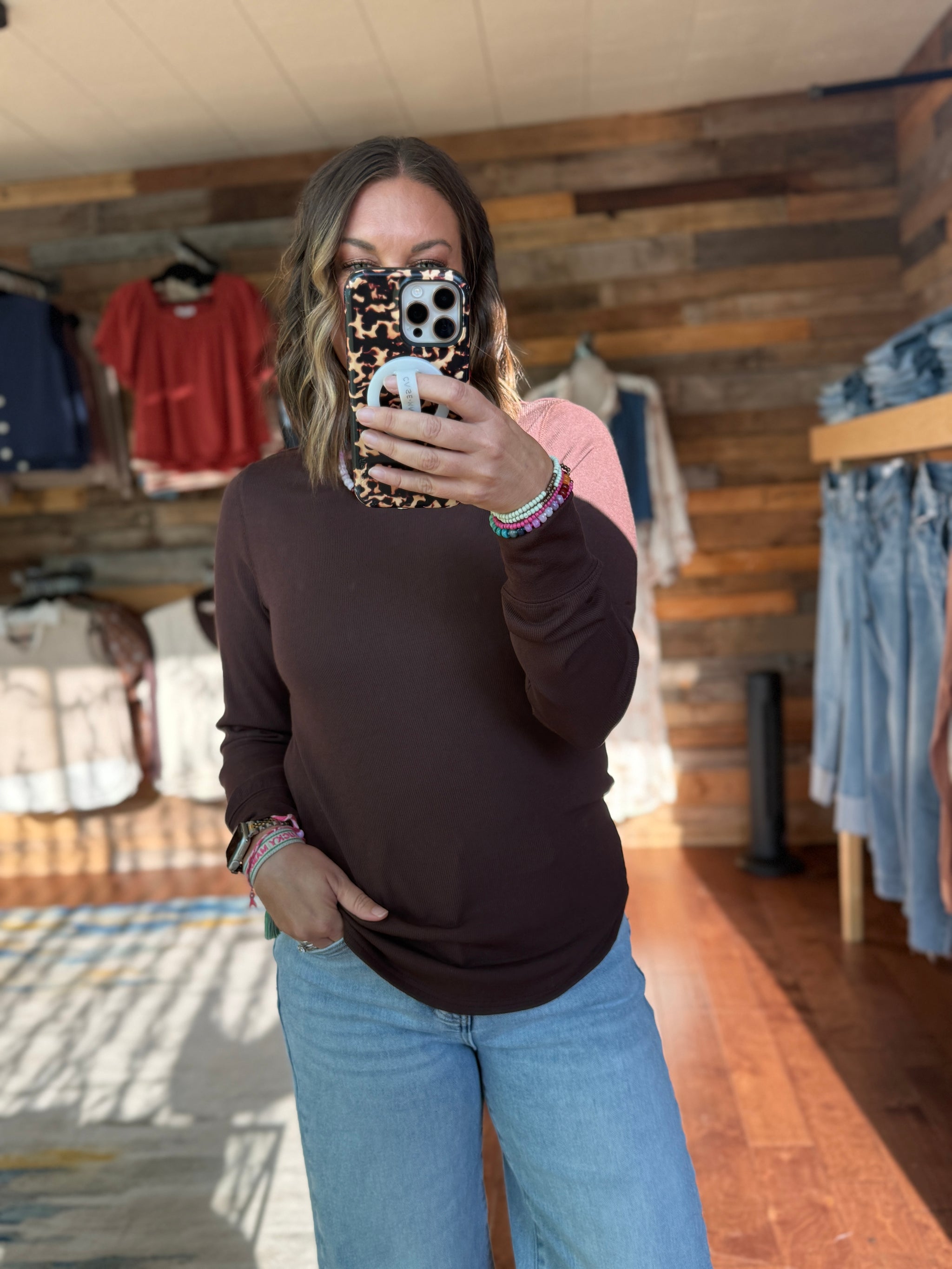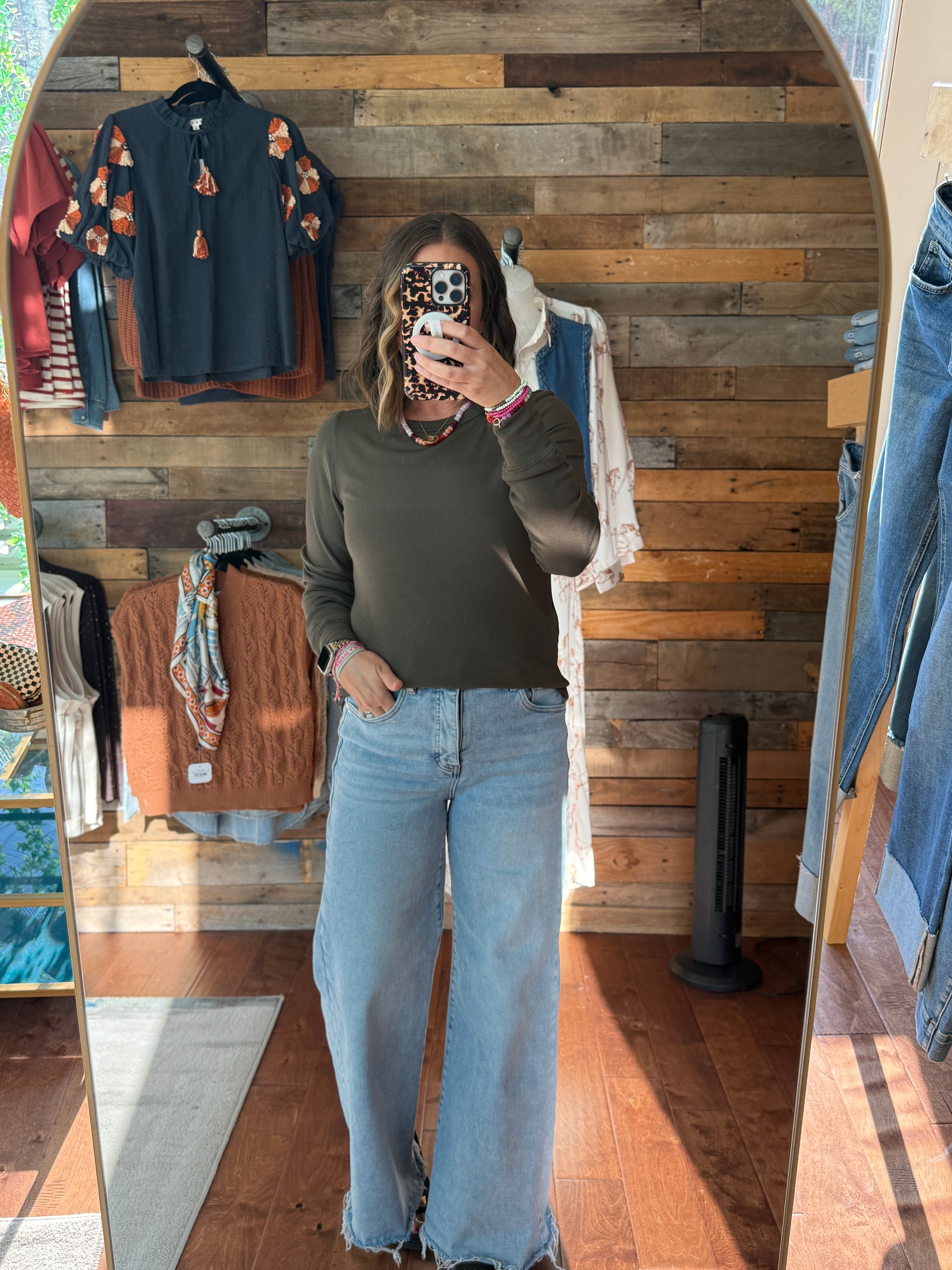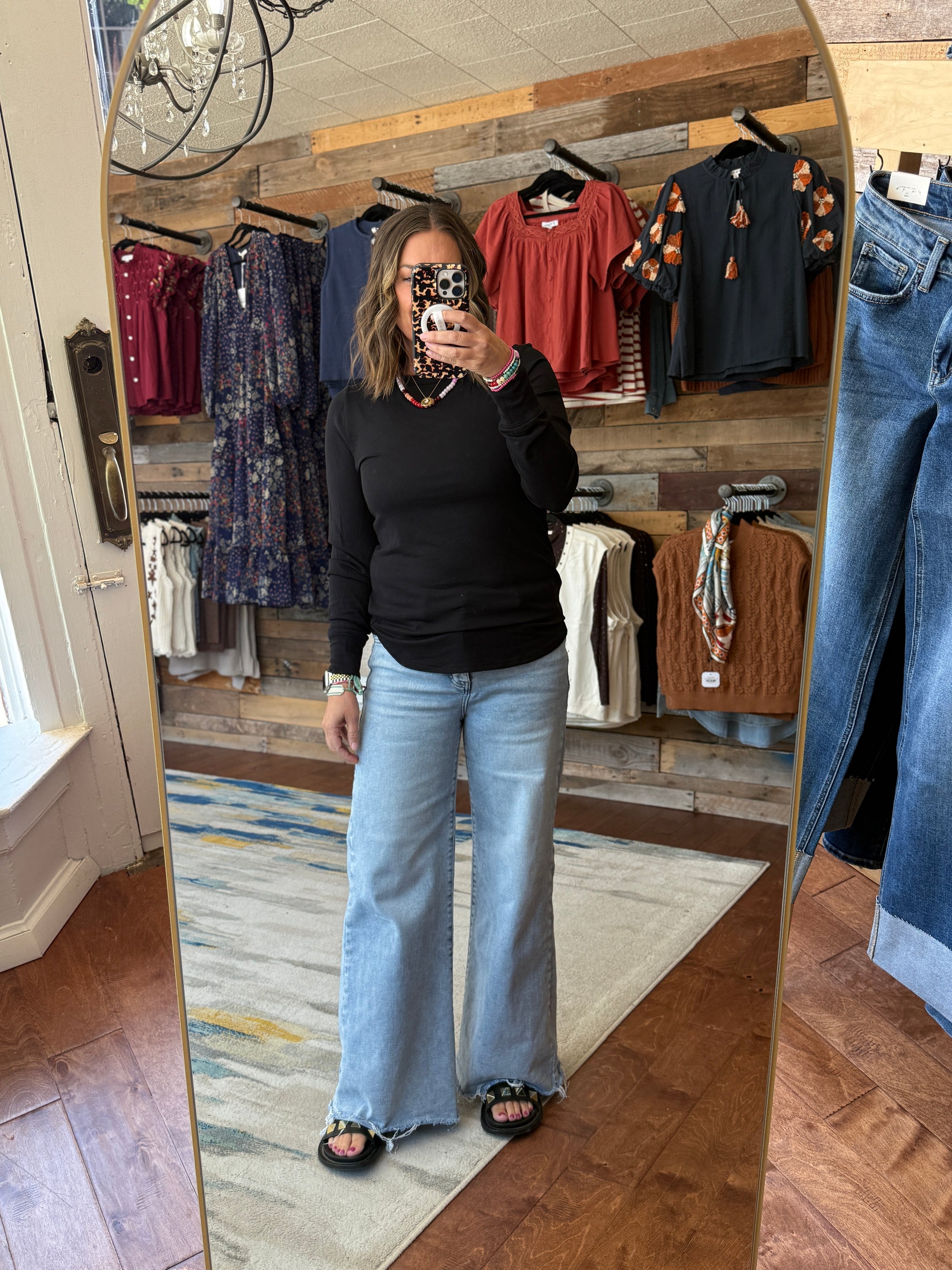 So classic and effortless, this essential long sleeve tee from our basics collection is featured in a relaxed silhouette and crew neckline.
