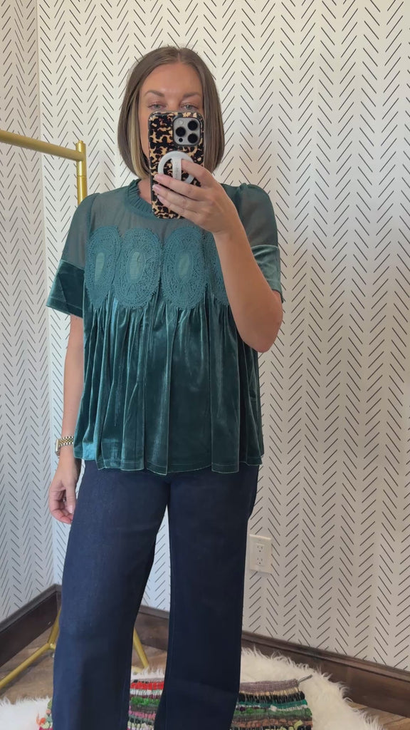High end look without the high end price! This gorgeous top is perfect for the holidays or a night out!
