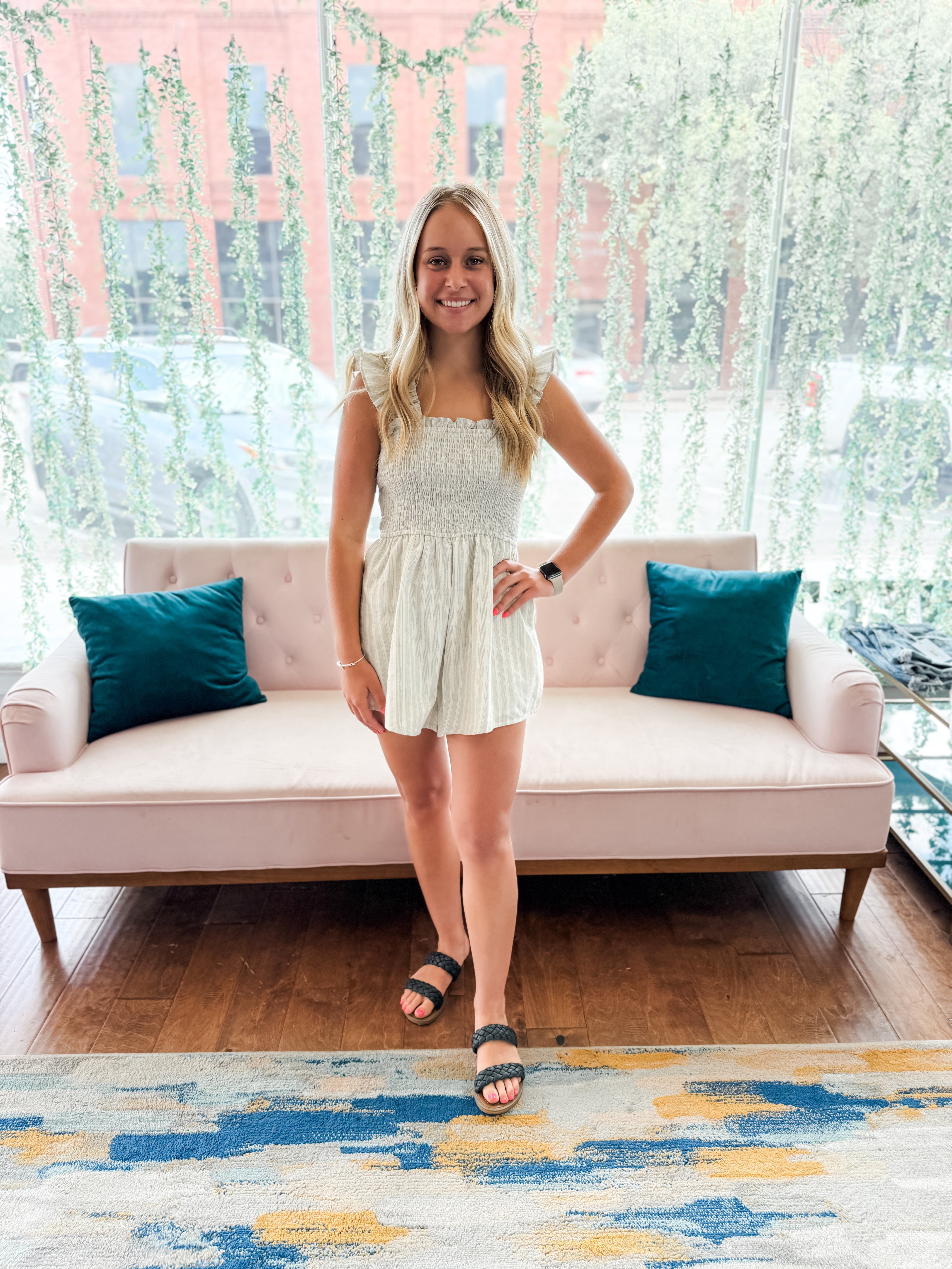 This little romper is adorable! It has a linen look and feel for the perfect summer outfit.